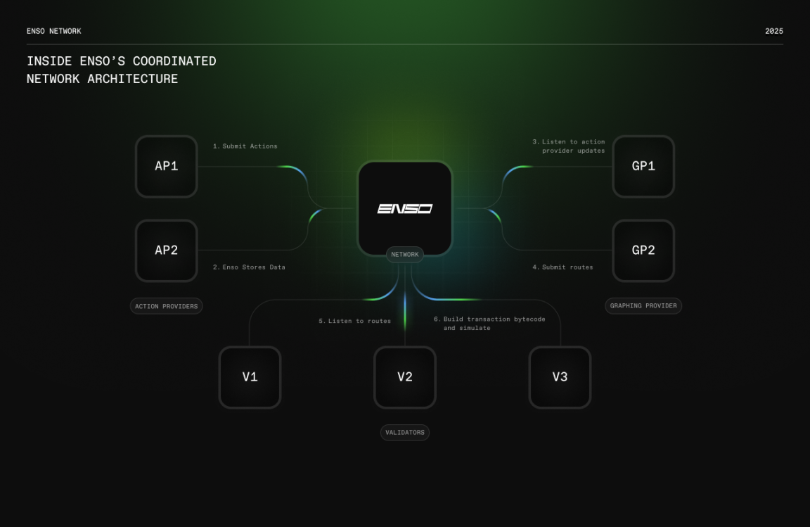 تغطي شبكة Enso النظام البيئي الكامل لقراءة البيانات وتنفيذ العمليات على السلسلة. تقوم Enso ببناء شبكة لامركزية ومفتوحة، مما يسمح للمطورين والذكاء الاصطناعي بالمساهمة بمصادر البيانات والمعلومات المتعلقة بالعقود الذكية المطلوبة للتنفيذ. يمكن لـ Enso الوصول إلى جميع التطورات البيئية الأخيرة من خلال الأدوات، مما يعزز ارتباط المطورين، ويحوّل مطوري Web3 الجدد إلى مستخدمي Enso.