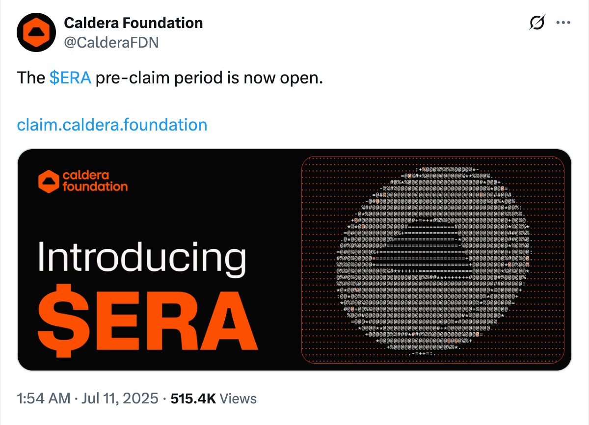 هذه المقالة لأغراض إعلامية فقط، الرمز المميز $ERA هو رمز مميز للأداة المساعدة في نظام Caldera البيئي والمعلومات المقدمة عرضة للتغيير. تأكد من إجراء البحث الخاص بك وطلب المشورة المهنية قبل اتخاذ أي قرارات مالية.