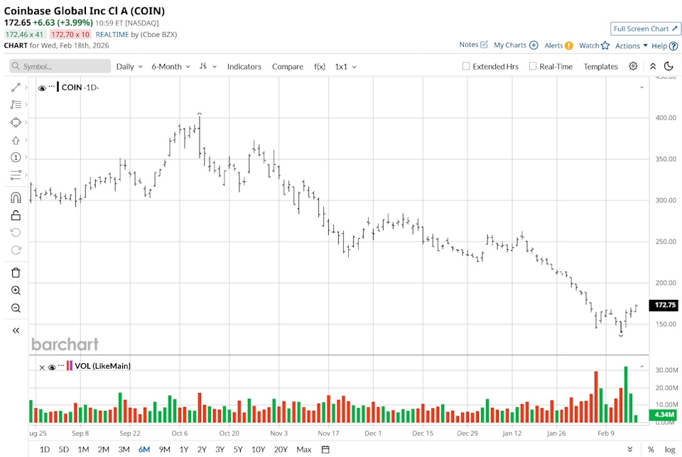 في 17 فبراير، خفضت ميزوهو هدف سعر Coinbase من إلى 170 دولارًا. وقالت الشركة إن انخفاض أسعار البيتكوين والمشاعر السلبية في سوق التشفير تضر بأساسيات الشركة. وتخطت خطوة واحدة ووصفت Robinhood HOOD بأنها شركة أفضل في هذه المرحلة، لكن بقية وول ستريت لا تزال متفائلة بشأن سهم COIN.