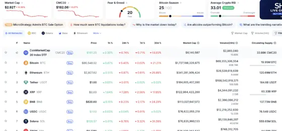 Según los datos de la plataforma de mercados de activos digitales, Bitcoin ha caído un 5.40% a 86549 dólares. Ethereum (ETH) ha bajado un 6.87% a 2823 dólares, cayendo por debajo de los 3000 dólares.