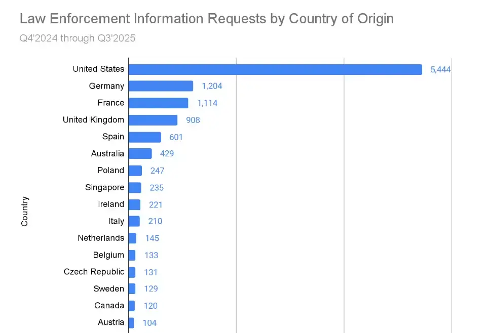 La noticia llega el mismo día que el informe de transparencia 2025 de una cierta plataforma de cumplimiento, que señaló 12,716 solicitudes de información por parte de las fuerzas del orden, un aumento del 19% con respecto a 2024.