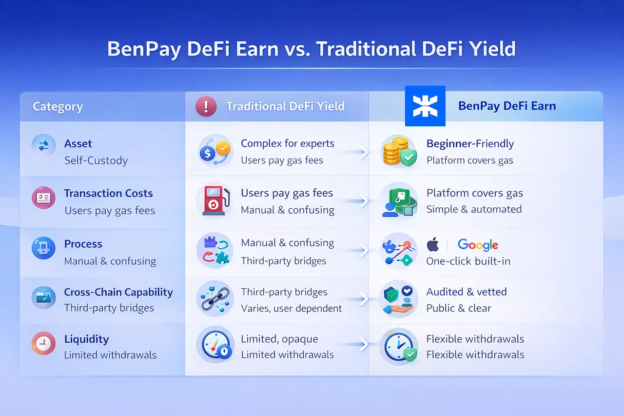 BenPay DeFi Earn vs. rendement DeFi traditionnel