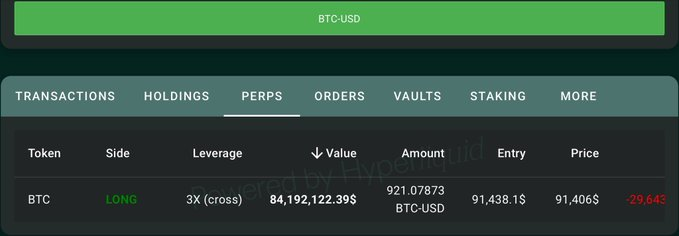 Pada 28 November 2025, pasar kripto kembali bergairah ketika seorang trader utama di Hyperliquid membuka posisi long Bitcoin (BTC) senilai $84,19 juta dengan leverage 3x. Besarnya nilai dan transparansi posisi ini langsung menjadi pusat perhatian pasar. Transaksi long bernilai besar dengan leverage seperti ini biasanya menandakan keyakinan kuat dari pelaku utama dan dapat menjadi barometer sentimen pasar secara umum.