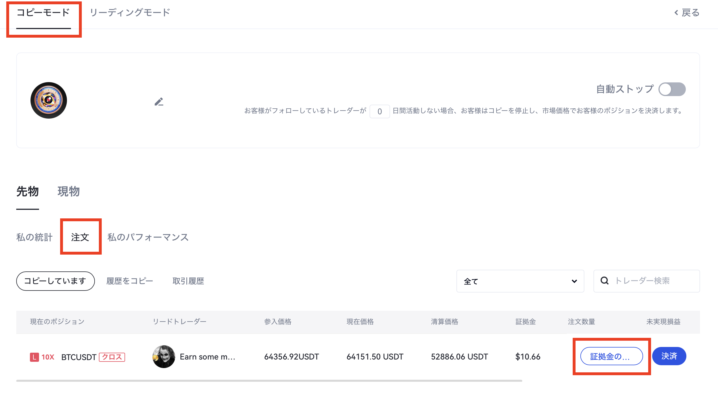 1.コピー注文パラメーターの調整とコピー注文金額の追加