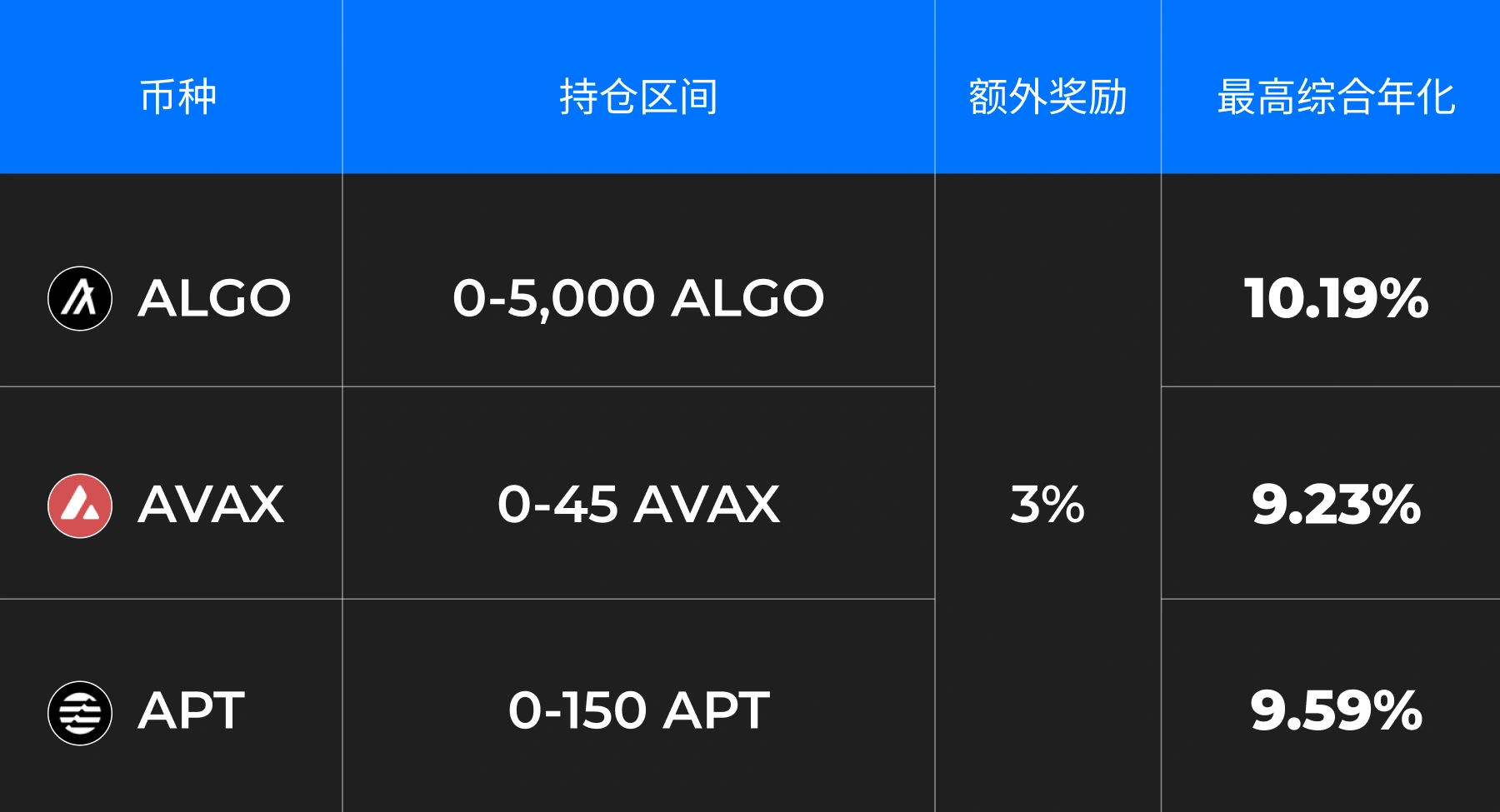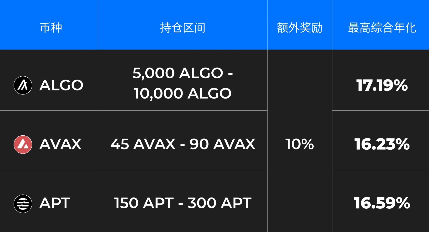 Gate.io オンチェーン獲得の特別イベントが正式に開始され、ALGO、AVAX、APTをステーキングし、対応するタスクを完了すると、「フォーチュンチャレンジ」イベントに参加して、より高いリターンをレイヤーごとにロック解除できます。 このイベントでは、3つのサプライズが設定されます:探検家から王まで、さらに3%〜10%の収入ジャンプを得ることができます。 最後のサミットでは、さらに50,000USDTESTを楽しむことができます。 また、サイドクエストも用意されており、クリアすると5,000USDTESTの報酬を抽選するチャンスがあります。今すぐステークして、あなたの暗号資産の価値上昇チャレンジを始めましょう。**イベント期間:2025年3月28日18:00 - 2025年4月10日18:00(UTC+8)****イベントルール:****メインクエスト - 富の階段**スターライトエクスプローラー! [](https://img.gateio.im/social/moments-d3889d1175cfcf016435195a9f568414)輝きの征服者! [](https://img.gateio.im/social/moments-c06483707df6ea819bf43c9dcb0f4f98)<div style="text-align: center;"><a data-type="Gate.io-activity" href="https://www.gate.io/staking/ALGO" target="_blank" style="text-decoration: none; 表示:インラインブロック; "><div style="text-align:center;background: #2354E6; padding: 16px; border-radius: 8px; width: 220px; margin: 0 auto;"><strong><span style="color:#fff; text-decoration: none;" > すぐにアルゴをステーク</span></strong></div></a></div><div style="text-align: center;"><a data-type="Gate.io-activity" href="https://www.gate.io/staking/AVAX" target="_blank" style="text-decoration: none; 表示:インラインブロック; "><div style="text-align:center;background: #2354E6; padding: 16px; border-radius: 8px; width: 220px; margin: 0 auto;"><strong><span style="color:#fff; text-decoration: none;"> AVAXをすぐにステーキング</span></strong></div></a></div><div style="text-align: center;"><a data-type="Gate.io-activity" href="https://www.gate.io/staking/APT" target="_blank" style="text-decoration: none; 表示:インラインブロック; "><div style="text-align:center;background: #2354E6; padding: 16px; border-radius: 8px; width: 220px; margin: 0 auto;"><strong><span style="color:#fff; text-decoration: none;"> APTをすぐにステーキング</span></strong></div></a></div>**サブクエスト - ソーシャル宝探し**X に ALGO、AVAX、APT の収益またはステークのスクリーンショットを投稿し、#Gate.io オンチェーンで通貨を稼ぐ冒険のタグを付けて @GateEarn をメンションすると、5,000 USDTEST の報酬を抽選で獲得できるチャンスがあります。<div style="text-align: center;"><a rel="nofollow noopener noreferrer" data-type="Gate.io-activity" href="https://gleam.io/eFNEv/50000-giveaway" target="_blank" style=" テキスト装飾:なし。 表示:インラインブロック; "><div style="text-align:center;background: #2354E6; padding: 16px; border-radius: 8px; width: 220px; margin: 0 auto;"><strong><span style="color:#fff; text-decoration: none;" >今すぐ参加</span></strong></div></a></div>報酬を受け取るために20人のユーザーが選ばれ、勝者は<a href="https://x.com/GateEarn" rel="nofollow noopener noreferrer" target="_blank" > Gate Earn Xで発表されます</a>。 **アルティメットボス-キングオブフォーチュン**活動期間中に累積ポジションの首位に立った場合、50,000 USDTEST の報酬を独占できます。ALGO、AVAX、APTは個別に計算され、当選者は<a href="https://x.com/GateEarn" rel="nofollow noopener noreferrer" target="_blank" > Gate Earn Xで発表されます</a>。**申込ルール:**Gate.io オンチェーンで通貨を稼ぎ、自主運営ノードを立て、中間業者の手数料を省き、運用資金の効率を向上させる- **申込方法:** 対応する製品を選択してステークし、個人のステーク上限はありません- **利息分配:** 毎日自動的にあなたのアカウントに配布され、追加報酬はGTの形で支給されます- **商品利息計算期間:** ALGO、AVAX、APT:D日目のステーキング、D+1日目の利息発生、D+2日目の配当分配 - **資産の償還:** 即時サービスを提供し、いつでもステークおよび償還を開始することをサポートします。償還中の通貨はステークによる利益や追加報酬を享受できません。**包括的な年率換算方法を参照してください:**- 指標年率 = 入門年率 + 追加報酬- 参考年化は固定されているわけではなく、ユーザーのステーク参加度やステーク収益に応じて毎日変動します。- 追加報酬およびイベント金利はプラットフォームの常設報酬メカニズムに属し、GTの形でユーザーアカウントに配布され、特定の申込額範囲に対してより高い年利を提供します。17.19%は参考年利であり、報酬は市場の変化に応じて動的に調整されます。- データは2025年3月28日に更新され、実際の製品利率は申込ページに表示されるものが基準となります。Earn on the Chainについて:Gate.io Earn on the Chainは、チェーンで高いリターンを得るために一定量の暗号資産を賭ける、さまざまな人気のあるPoSプロジェクトをまとめたものです。 Gate.io 厳格なプロトコルレビューと専門的なリスク評価を通じて、高品質のプロジェクトを選別し、デジタル資産が着実に成長できるよう、多様なステーキング商品を提供します。**オンチェーンで通貨を稼ぐにはどうすればよいですか?**- Web:コインを稼ぐ - オンチェーンでコインを稼ぎ、必要なコインに対応する商