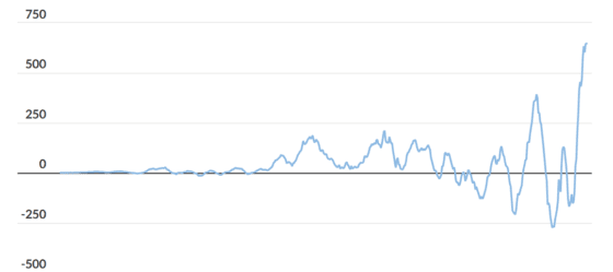 ニューヨーク証券取引所上場企業の内部者の買い・売り比率を追跡するビカス指数は、10月初めに史上最高値の27を記録しましたが、最近は2.5レベルに急減しました。これは内部者の自社株買いが増加していることを示す指標です。