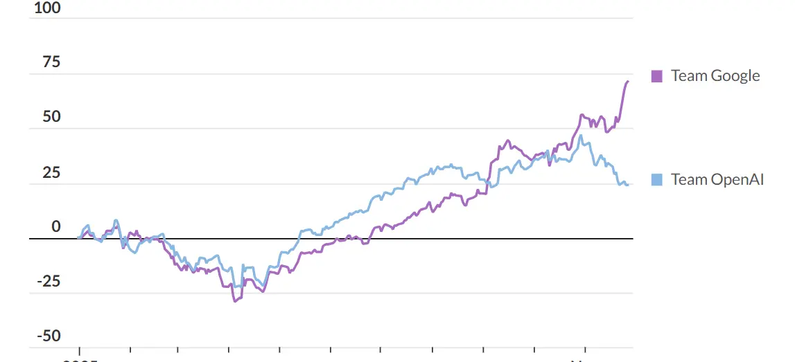 AI受益株の構図再編… 'チームグーグル'と'チームオープンAI'に分かれる