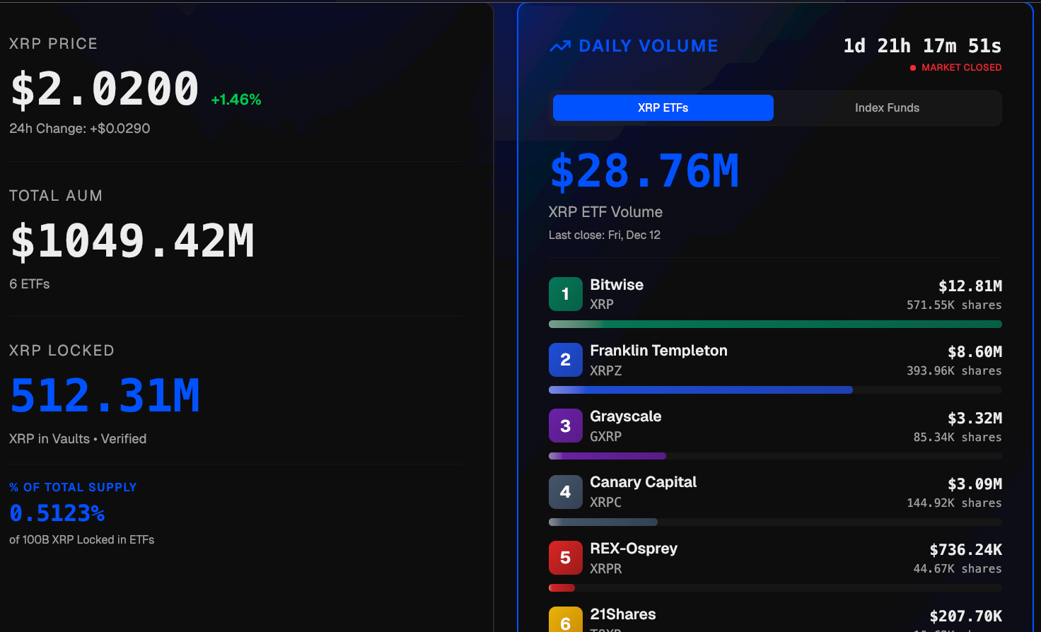 その規模では、ETFの保有量はおそらくXRPの実効流動性の20〜30%を吸収し、トークンが長期の保管車両にロックされることで売り圧力を実質的に軽減します。