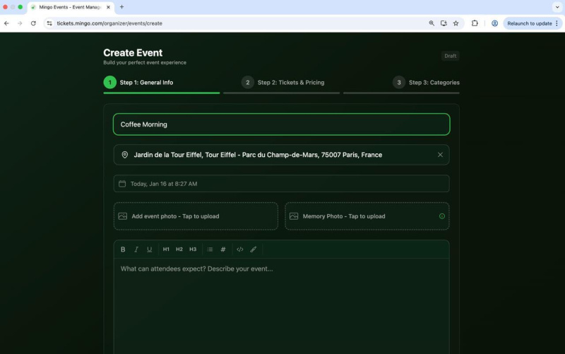 MINGOは、世界中のあらゆる規模のイベントを積極的にオンボーディングしています。プラットフォームへのイベント主催者、プロモーター、会場の紹介者は、MINGOのグローバル展開の一環として参加資格を得る場合があります。