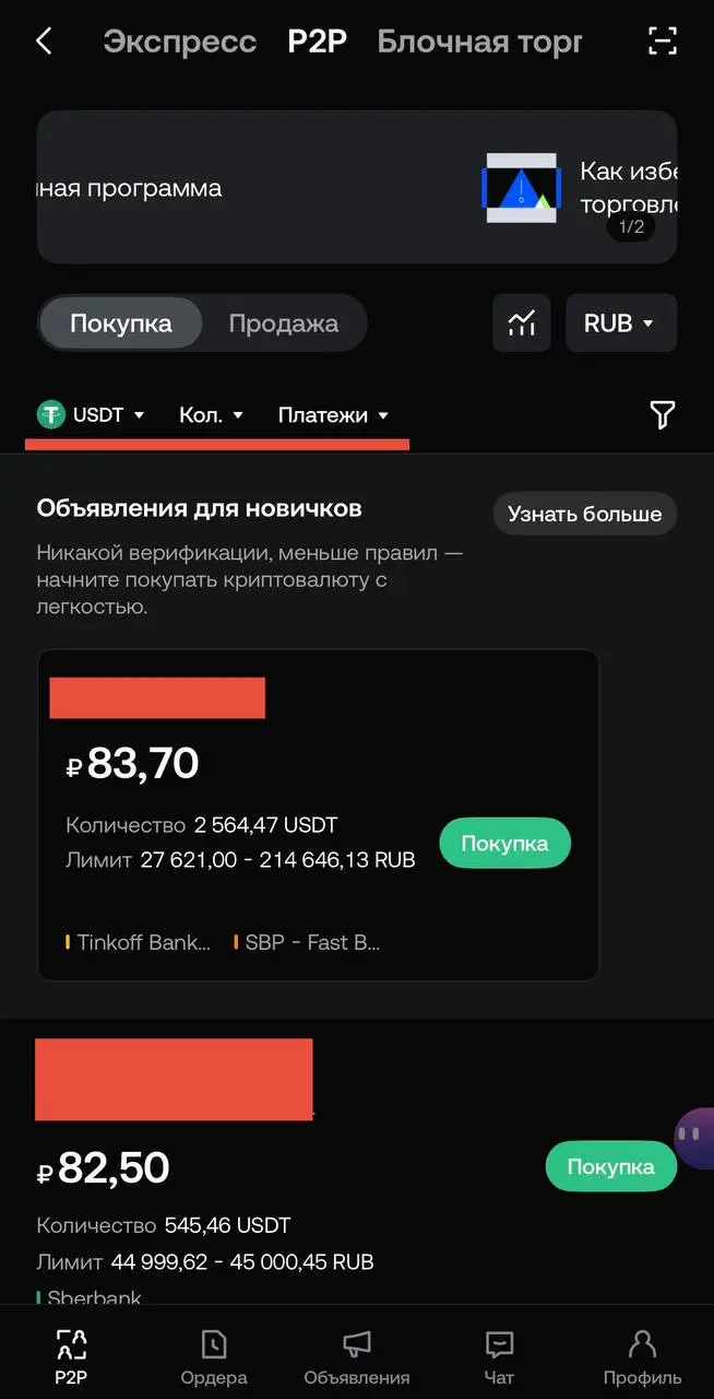 ステップ2:P2P取引ページで適切な販売者を選び、右側の「購入」をクリックします。