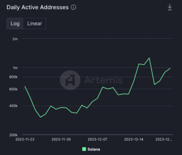 今月に入ってから、このネットワークに対する需要が顕著に増加しています。 12月18日、同チェーンの1日あたりのアクティブアドレス数は、年初来で最高となる126万件に達しました。