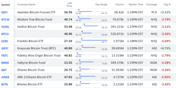 敗者は、おそらく予想されたように、小さなプレーヤーの中に見つかりました。 値動きの最初の1時間の出来高表の一番下には、ハッシュデックスビットコイン先物ETF(DEFI)があり、25,864ドルの出来高を集めることができました。 しかし、最後に笑うのはミノーかもしれません。