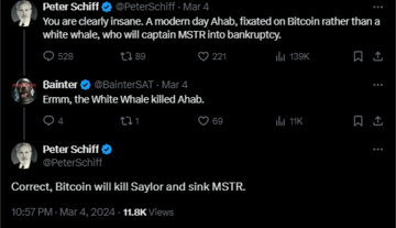 ## **重要な洞察*** 経済学者のピーター・シフ氏は、今週を通じてツイッターで大騒ぎをしてMicroStrategyを批判し続けた。*シフ氏はビットコインはリスクが高く、MicroStrategyに損害を与える可能性があると考えているが、セイラー氏はビットコインがインフレに対する優れたヘッジだと考えている。*シフ氏は、ビットコインはMicroStrategyを「殺す」だろうし、キューバ人は間違った水槽で泳ぐサメだと述べた*金価格は上昇しており、最近最高値に達しており、シフ氏はこれをビットコインに対する金の信頼性の証拠として強調した* 一方、マイケル・セイラーは、批判にもかかわらず、MicroStrategyのためにビットコインを購入し続けています。法定通貨やその他の形式の通常のお金の変動性のため、投資家はお金自体が発明されて以来、自分の富を守り、インフレに対するヘッジとして機能する資産を求めてきました。目次重要な洞察シフ vs キューバ: 意見の衝突マイクロストラテジー: シフ vs セイラー金 vs ビットコイン: 安全な避難所の未来金は、富の貯蔵手段としての長い歴史のため、歴史的に多くの投資家にとって好ましい選択肢でした。交換。しかし、ビットコインが争いに参入し、専門家や投資家は10年以上にわたって激しく争ってきた。エビから魚、サメやクジラ、機関投資家に至るまで、ビットコインはその希少性と検閲への抵抗力により、ますます人気が高まっています。多くの人は、ビットコインが金よりも優れているとさえ主張しています。それでも、誰もがビットコインのメリットに納得しているわけではない。著名な経済学者で金の擁護者であるピーター・シフを含む数人の批評家は、この主力仮想通貨を絶え間なく叩きつけ、億万長者の投資家で起業家のマーク・キューバン氏やマイクロストラテジー社のCEOをツイッターでの暴言に巻き込んだことさえある。## **シフ対キューバ人: 意見の衝突**シフ氏とキューバン氏は何年もの間、ソーシャルメディア、特にツイッター上で互いに叩き合い、ビットコインと金についての意見の相違について議論してきた。キューバン氏はシフ氏を「時代遅れ」で世界とともに動く気がないと一蹴したが、シフ氏はビットコインを選択したキューバン氏の無知と不合理を非難した。 SPDR Gold Trust GLD統計のデータによると、金の価格は上昇しており、今週月曜日にはトロイオンスあたり2,110ドルという過去最高値を記録しました(執筆時点では金はさらに2,135ドルまで上昇しています) )。 シフ氏はキューバ人を非難 シフ氏はツイッターで、キューバ人は「間違った水槽で泳ぐサメ」だとさえ言った。## MicroStrategy: **シフ vs セイラー**シフ氏はキューバの後もビットコイン批判をやめなかった。同エコノミストは続けて、MicroStrategyと、最も率直で積極的なビットコイン採用企業の1人であるマイケル・セイラー氏を批判した。財務準備計画の一環として、MicroStrategy は 2020 年 8 月以来、約 193,000 ビットコインを蓄積しており、BuyBitcoinWorldwide によると、現在のレートで 120 億ドル以上の価値があるセイラー氏は、現金や他の従来の資産と比較して、ビットコインはより大きな利益とより少ないリスクを備えた優れた資産クラスであると主張して、なぜビットコインをこれほど購入するのかを擁護している。さらに、ビットコインは21世紀で最も強力かつ革命的なテクノロジーであり、世界的に大きな変化をもたらすだろうとの信念を述べています。しかし、シフ氏はセイラー氏と投資家に対し、彼らの「ビットコインをすべて買う」戦略は無謀で失敗するのは確実だと通告した。同氏は、ビットコインは投機的で不安定な資産であり、固有の価値はないと主張している。さらに、セイラー氏は会社の将来を危険にさらしており、破産の危機に瀕していると主張した。 同社がビットコインをさらに購入するための追加資金を得るために6億ドルの転換社債を売却すると発表したことを受け、シフ氏は火曜日、「ビットコインはセイラーを殺し、マイクロストラテジーを沈めるだろう」とツイートした。 。シフ氏は、セイラー氏がこの行動で自分自身と自分のビジネスにさらに損害を与えていると主張したが、それは絶望的な気持ちを示している。セイラー氏はまだシフ氏のツイートに返信していないが、同氏は過去に、自身の戦略が長期的に成功することに自信を持っており、ビットコインの価格変動については心配していないと述べていた。さらに、同氏はレバレッジをかけずに保有株を維持するのに十分なキャッシュフローと流動性があると述べた。## **ゴールド vs ビットコイン: 安全な避難所の未来**ビットコインと金の支持者の間で進行中の議論は、金融業界におけるより大きな議論と問題を示しています。ビットコインとゴールドにはメリットとデメリットがあります。さらに、金には拡張性、入手しやすさ、創意性がすべて制限されているため、信頼性が高く長期にわたる富の貯蔵庫であると