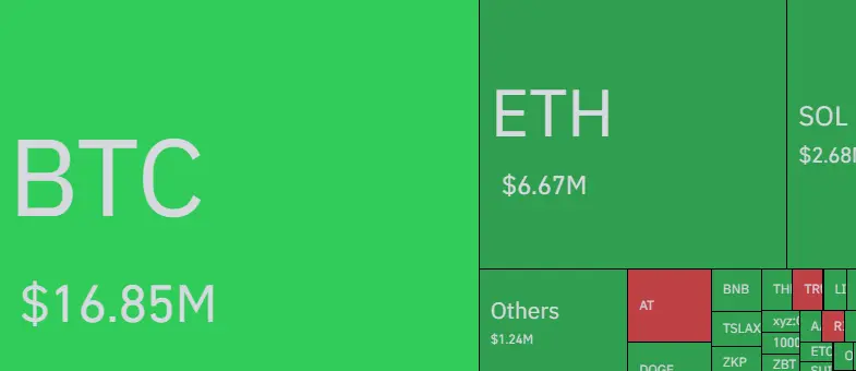 The decline in Bitcoin also led to significant liquidations in the derivatives markets. A total of $243 million worth of positions were liquidated in the last 24 hours, with $155.5 million of that being long positions and $87.8 million being short positions. Looking at it by asset, the largest liquidation occurred in BTC, with $106.6 million. Bitcoin was followed by Ethereum ($40.1 million) and Solana ($17.4 million).