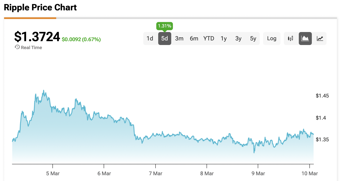 At the time of writing, XRP is sitting at $1.37.