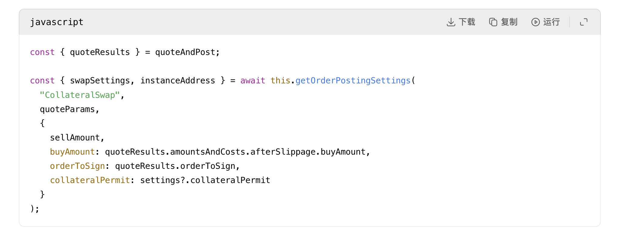 This part is crucial, ruling out many false hypotheses: the aave-v3-interface-collateral-swap process on the official Aave UI, at line 139 in useSwapOrderAmounts.ts, calculates the slippage-adjusted buy amount based on quote, network fees, partner fees, flash loan costs; line 331 converts this to buyAmountBigInt; then, at line 191 in CollateralSwapActionsViaCoWAdapters.tsx, it completes precise signing of this amount.