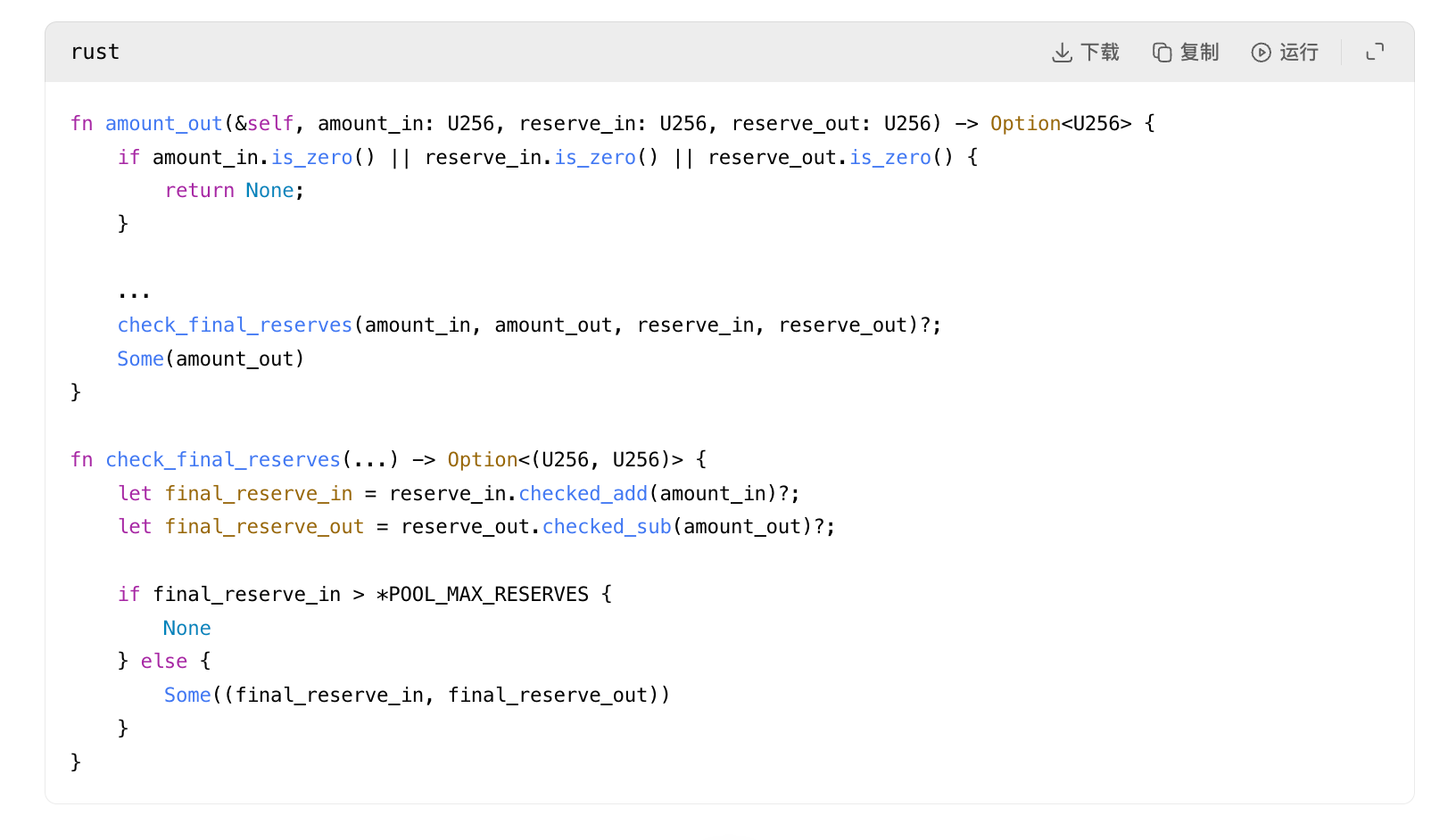 This code does not verify whether the pool’s size is sufficient to handle the corresponding route transaction. It only checks if the swap is mathematically valid. Therefore, even a tiny pool with only 331 AAVE reserves can be deemed capable of handling a request to buy 17,957 WETH, simply because the constant product formula yields a non-zero result—completely ignoring the fact that executing such a trade would destroy the pool’s assets.