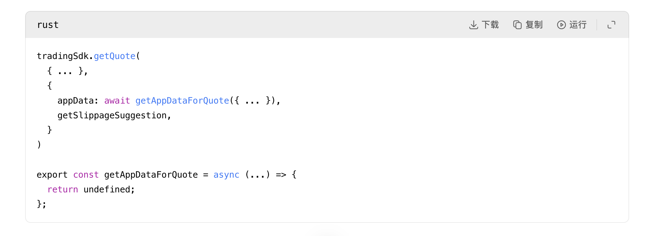 The first obvious code anomaly appears in the Aave interface’s CoW adapter quote process: the function that normally attaches adapter-specific application data when requesting a quote was forcibly disabled.