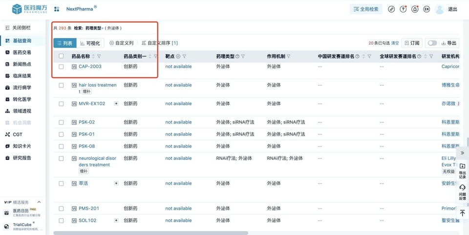 Despite many bottlenecks, research and industry exploration of exosomes have not stopped. According to data from Pharma Magic, there are currently 293 innovative exosome drugs worldwide.
