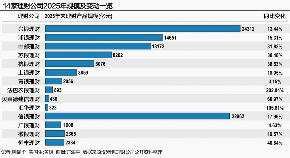 Currently, 14 wealth management companies have disclosed their 2025 second-half financial product reports, including Xingyin Wealth Management, Puyin Wealth Management, China Post Wealth Management, Xinyin Wealth Management, Huiyin Wealth Management, Hangyin Wealth Management, Qingyin Wealth Management, Huihua Wealth Management, BlackRock CCB Wealth Management, BNP Paribas Agricultural Bank Wealth Management, and others.