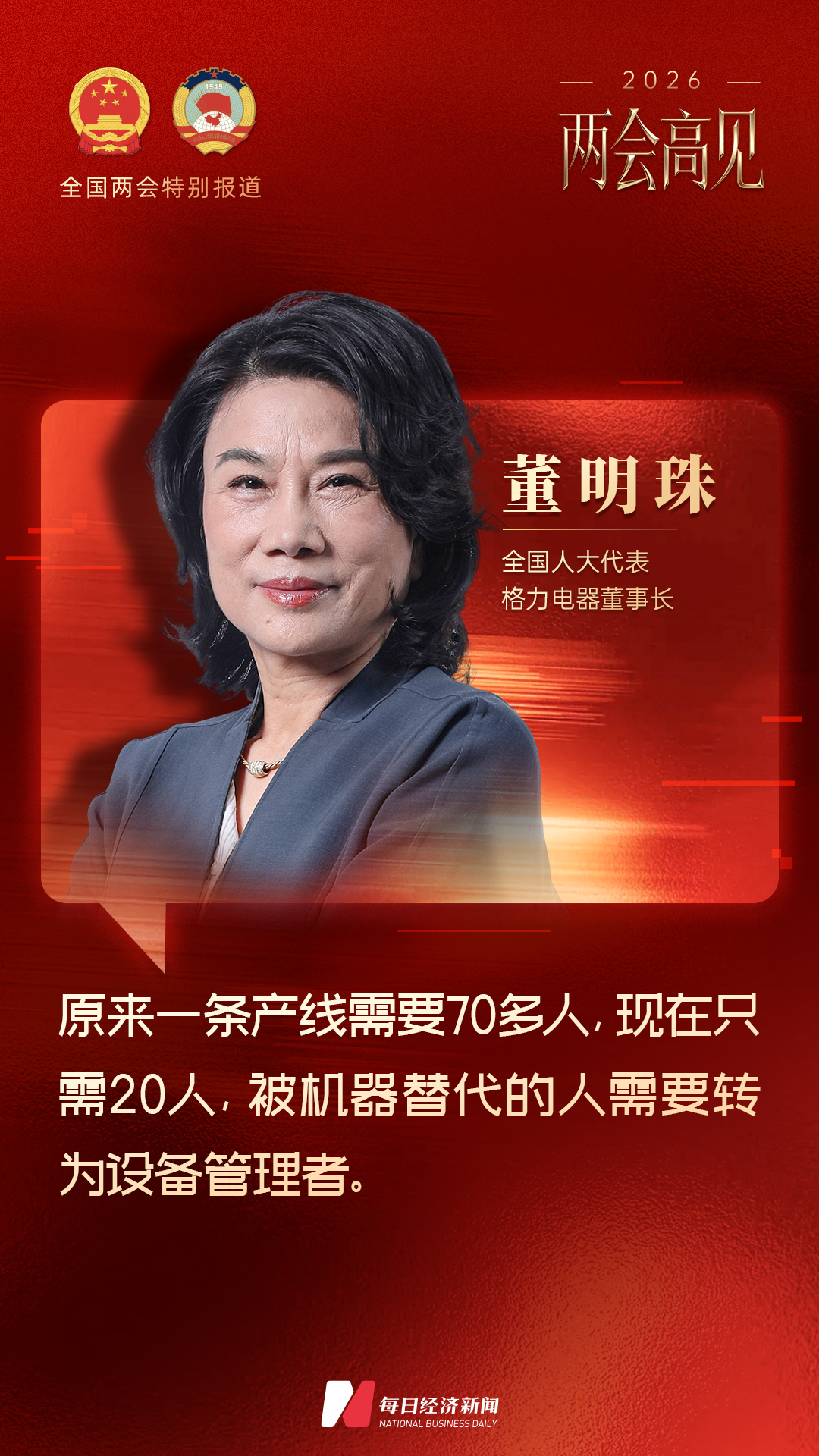 Focusing on these questions, during the National Two Sessions, Daily Economic News (hereinafter NBD) interviewed National People’s Congress (NPC) Deputy and Gree Electric Appliances Chairman Dong Mingzhu on-site.