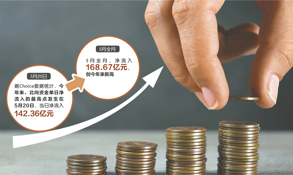 According to Choice data, the highest single-day net inflow of northbound funds this year occurred on May 20, with 14.236 billion yuan. In May, the total net inflow was 16.867 billion yuan, setting a new high for the year.