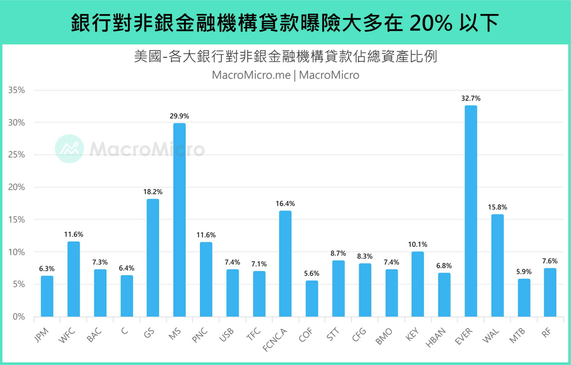 Regarding the likelihood of liquidity crises, we remain relatively optimistic because most banks’ exposure to NDFIs remains within limited ranges. According to S&P Global Market Intelligence, among the top 20 US banks by NDFI loan exposure in Q4 2025 (accounting for about 85% of the total NDFI loan market), most have relatively limited exposure, with related loans generally constituting less than 20% of total assets. Only 8 banks have exposure exceeding 10%, indicating overall risk concentration remains manageable.