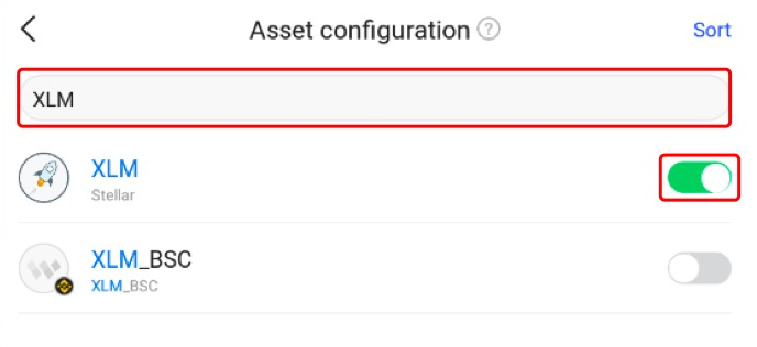 Passo 2: Pesquise “XLM" e adicione-o às configurações.