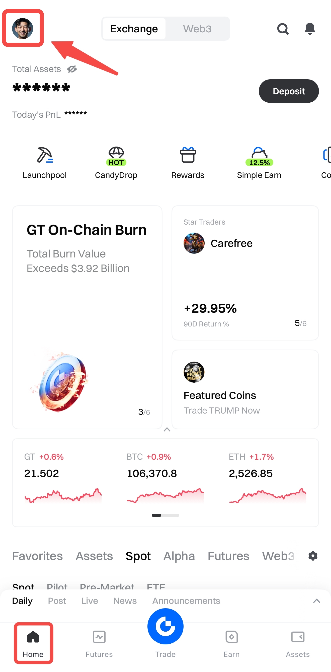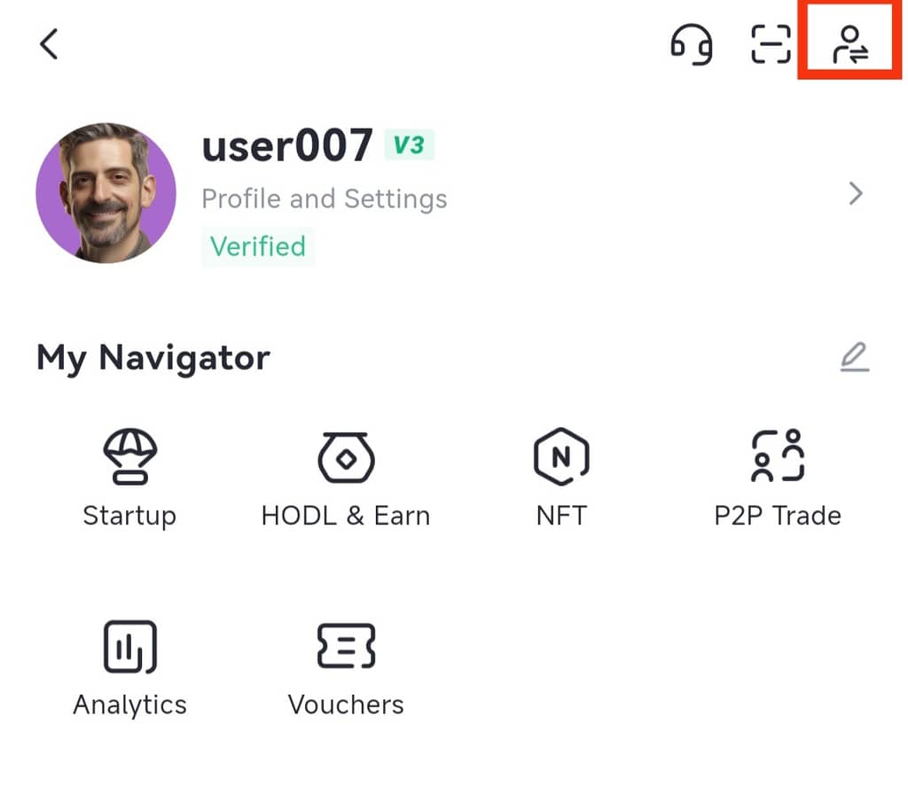 Etapa 1: Abra o aplicativo Gate e faça login. Toque no ícone de perfil no canto superior direito da tela inicial para acessar [Subcontas].