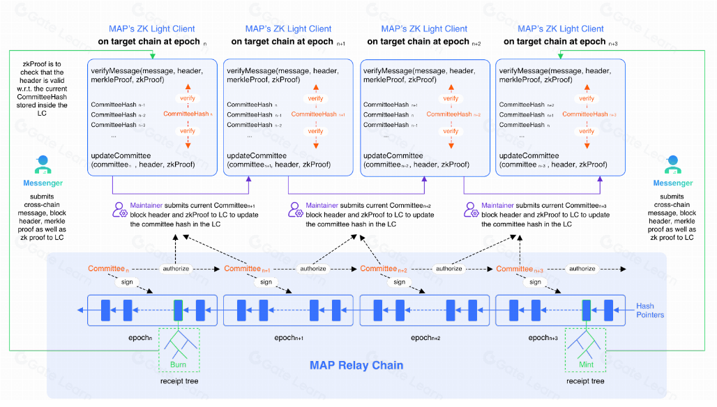 O cliente leve no MAP Protocol é responsável por verificar transações entre diferentes blockchains. A integração de ZKPs melhora a eficiência desse processo. O cliente leve pode confirmar a validade do cabeçalho do bloco por meio da verificação de prova zk-SNARK, sem a necessidade de realizar muitos cálculos. Isso reduz significativamente os custos de gás das transações intercadeias, ao mesmo tempo que mantém alta segurança.