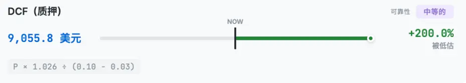 A fórmula fornecida pela Hashed não pode ser usada para calcular este resultado. Se calcularmos com uma taxa de juro anual de 2,6%, o preço razoável que se obtém deve ser cerca de 37% do preço atual.