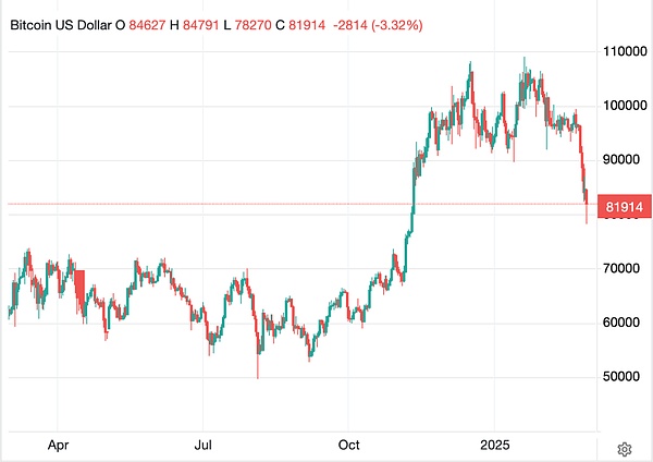 Com o BTC acelerando sua queda, uma vez que atingiu a marca dos 80k intraday, caindo de volta para os “7 dígitos”, todo o mercado de criptomoedas está mergulhado em um enorme pânico.