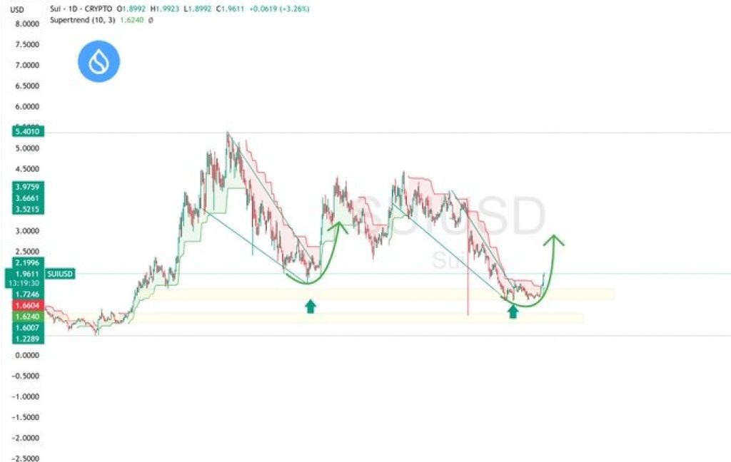 O preço da SUI manteve-se firme e depois avançou, o que não é típico de gráficos fracos. Ao mesmo tempo, a SUI registou um movimento forte nas últimas 24 horas e recuperou a zona dos $1.80, trazendo o nível dos $2.00 de volta ao foco.