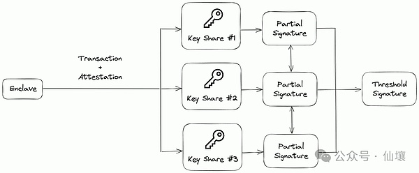 Есть и другое решение, ** а именно, TEE передает соответствующие транзакции разным серверам MPC, после чего серверы MPC подписывают их и агрегируют подписи, и, наконец, транзакции попадают в блокчейн. Этот метод намного менее гибок и не может использоваться для сохранения ключей API, паролей или произвольных данных (без доверенного стороннего хранилища данных).**