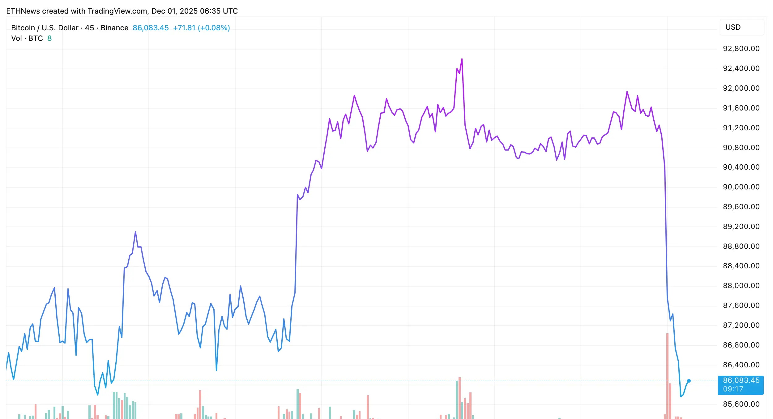 Оригинальное название: Биткойн упал обратно до $86,000: вот почему