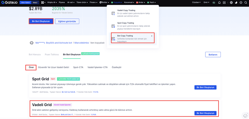 Vadeli grid oluşturmak için aşağıdaki adımları izleyin: gezinti çubuğu - "İşlemleri Kopyala "ya tıklayın - "Stratejiler Şablonlar-Vadeli "i seçin - "Vadeli Grid" - "Strateji Oluştur "a tıklayın - "İşlem Çiftleri "ni seçin - "Parametreleri Yapılandır" - Aşağıdaki şekilde gösterildiği gibi "Oluştur "a tıklayın: