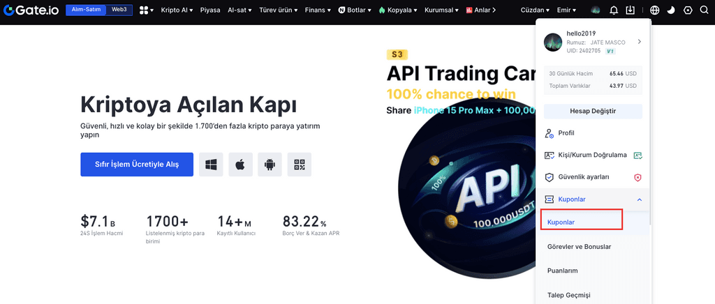 Lütfen kupon başarıyla yatırıldıktan sonra Bonus İşlem Moduna geçin ve ardından vadeli işlem bonusu ile pozisyon açabilirsiniz.
