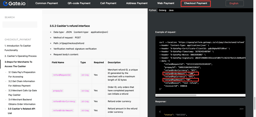 Örneğin, On-chain Adres Ödemesi için iade özelliği, On-chain Adres Ödemesi iade API'si üzerinden erişilmelidir. Checkout Ödemesi, On-chain Adres Ödemesi içerse de, iadeyi Checkout Ödemesi altındaki iade API'si kullanmak önemlidir.