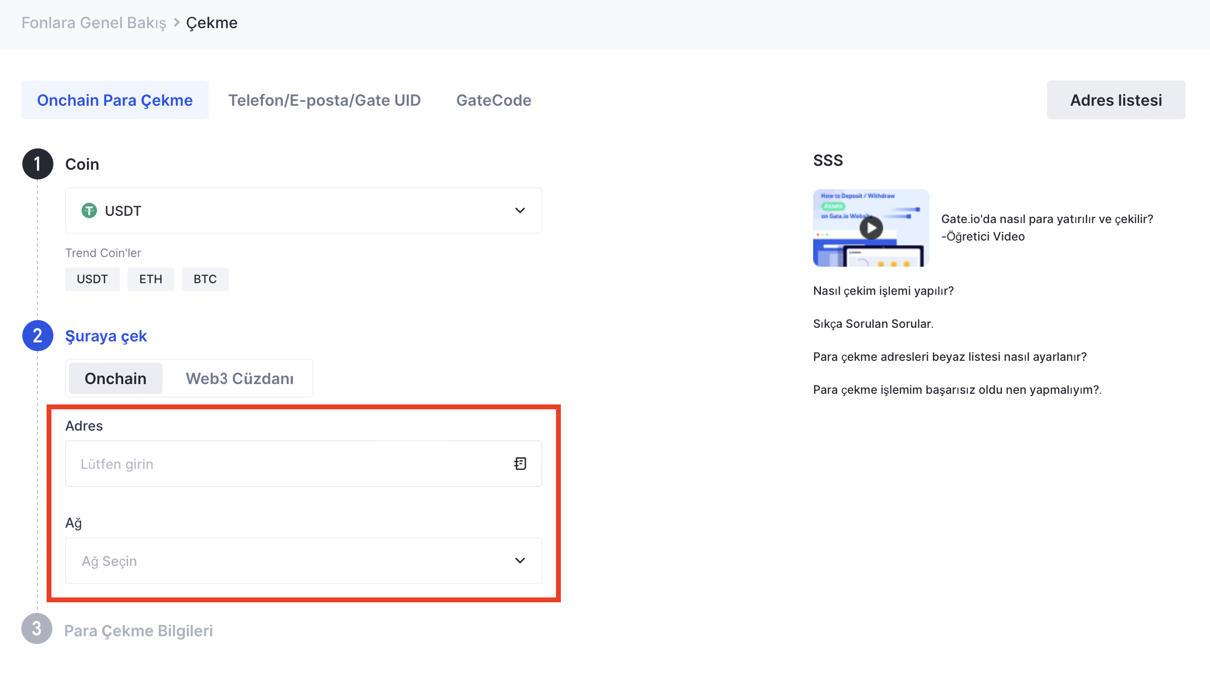 3. On-chain Adres Ödemesi için iadeleri işlemek için tüccarlar, kullanıcıların önce bir Gate hesabı kaydetmelerini sağlamalıdır.