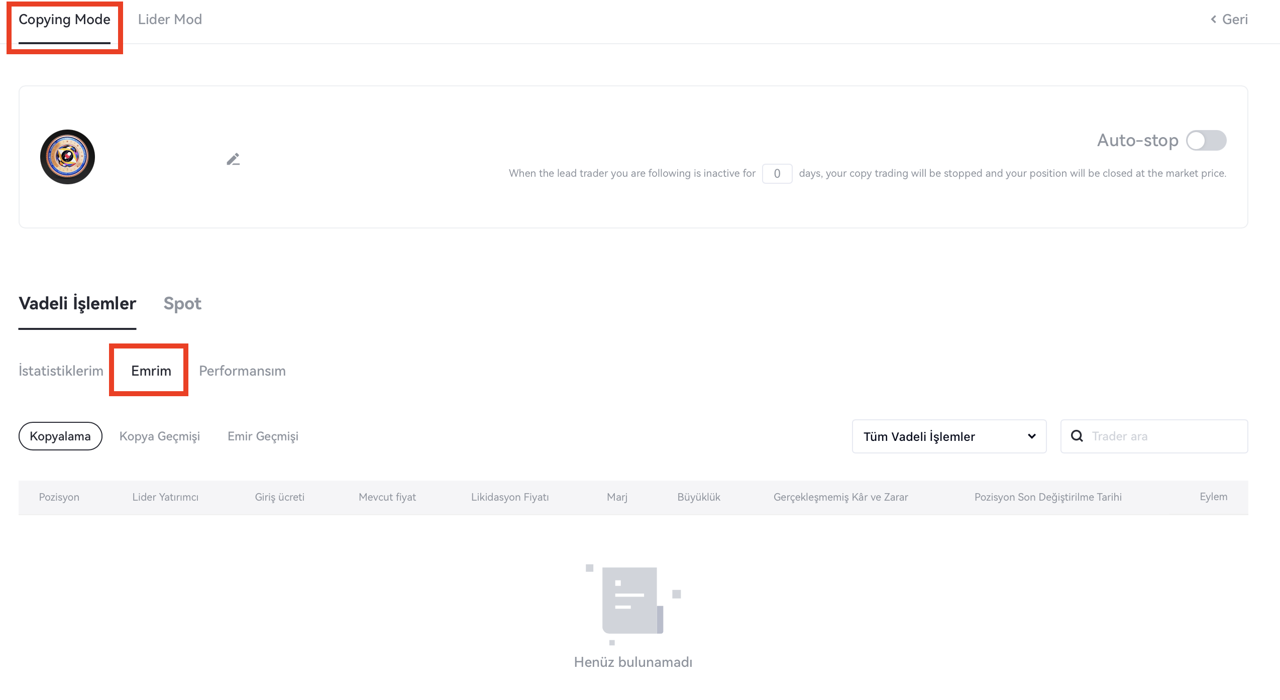 2. Lider tüccarın pozisyonu olmadığında kopyalamaya başlama seçeneğini artırın