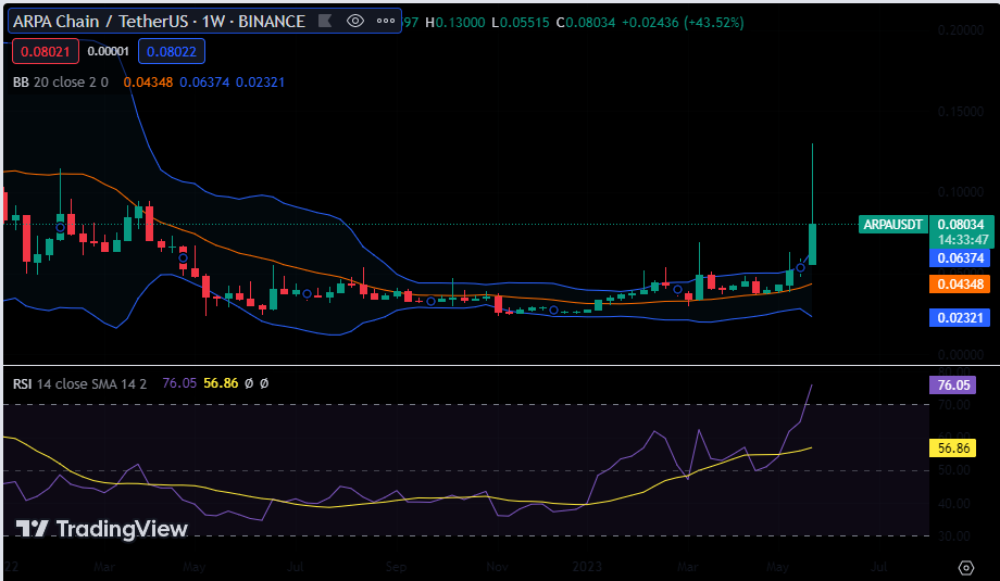 ARPA 1-week chart | Source: TradingViewThe Relative Strength Indicator is however moving high above its average line, giving a strong indication of a bullish trend on Arpa.
