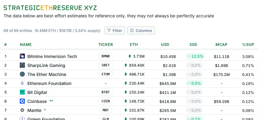 Bitmine is the largest ETH digital asset treasury firm (DAT) on the market by a significant margin.