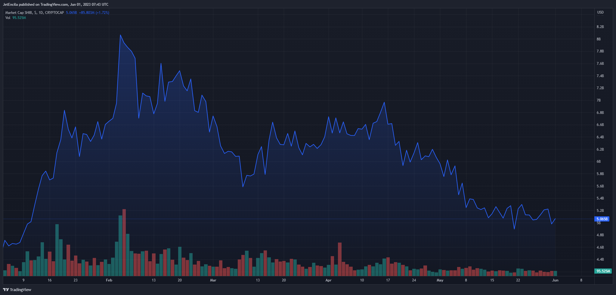 SHIB market cap still pegged at $5.06 billion. Chart: TradingView.com
