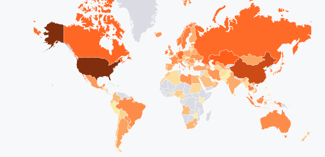 The United States, meanwhile, posted almost 38%, with Russian neighbors Kazakhstan and China on over 13% and 21% respectively.