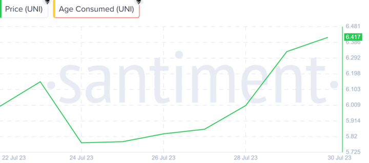 In the case of UNI, the Age Consumed skyrocketed from 11.66 million on July 22 to 292.71 million by the end of July 30. Such a surge in Age Consumed suggests a notable movement of previously dormant UNI tokens, raising questions about the intentions of long-term holders and the potential impact on the token’s price.