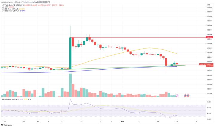 On the other hand, the medium-term support level (green) indicates that XRP isn’t going to fall below $0.50, at least not for very long.