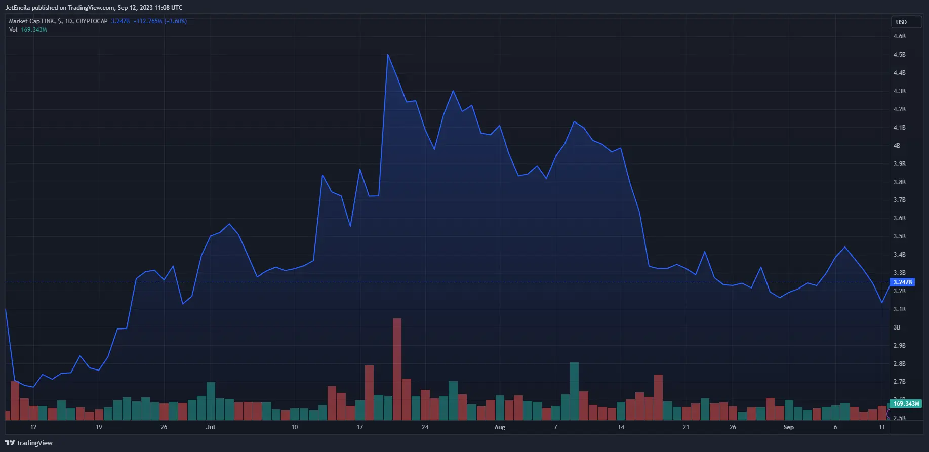 LINK market cap currently at $3.2 billion. Chart: TradingView.com