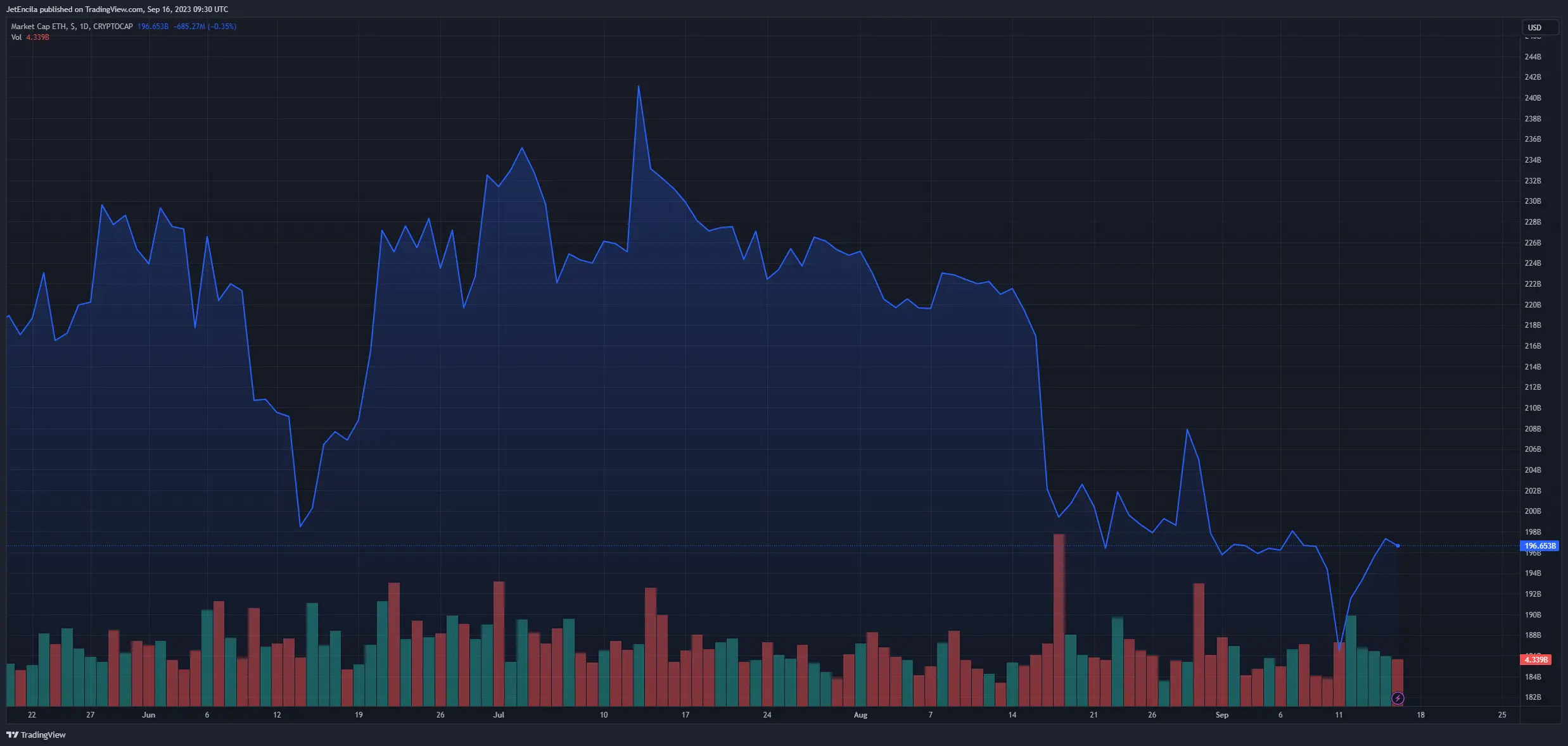 ETH market cap at $196 billion on the weekend chart: TradingView.com