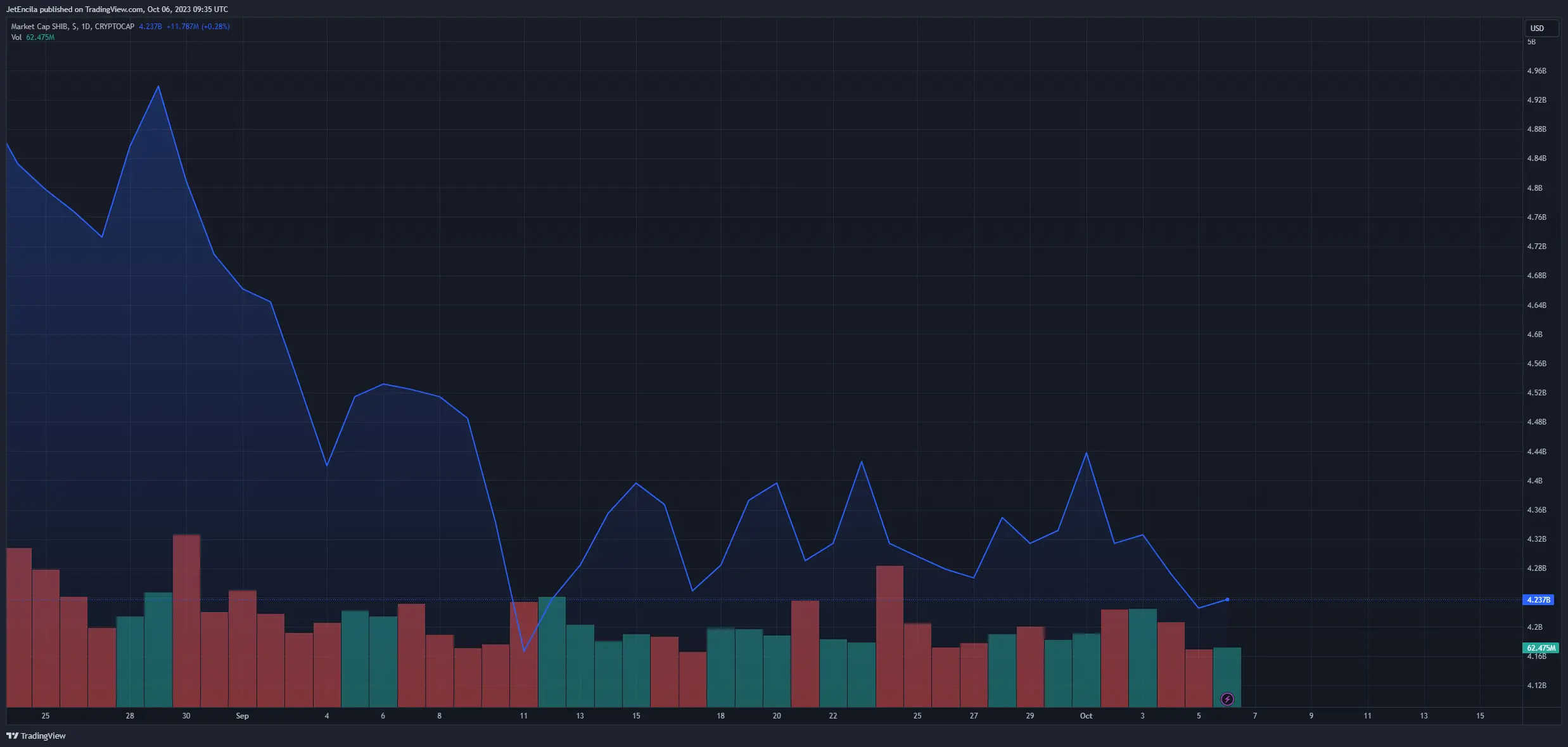 SHIB market cap currently at $4.2 billion. Chart: TradingView.com