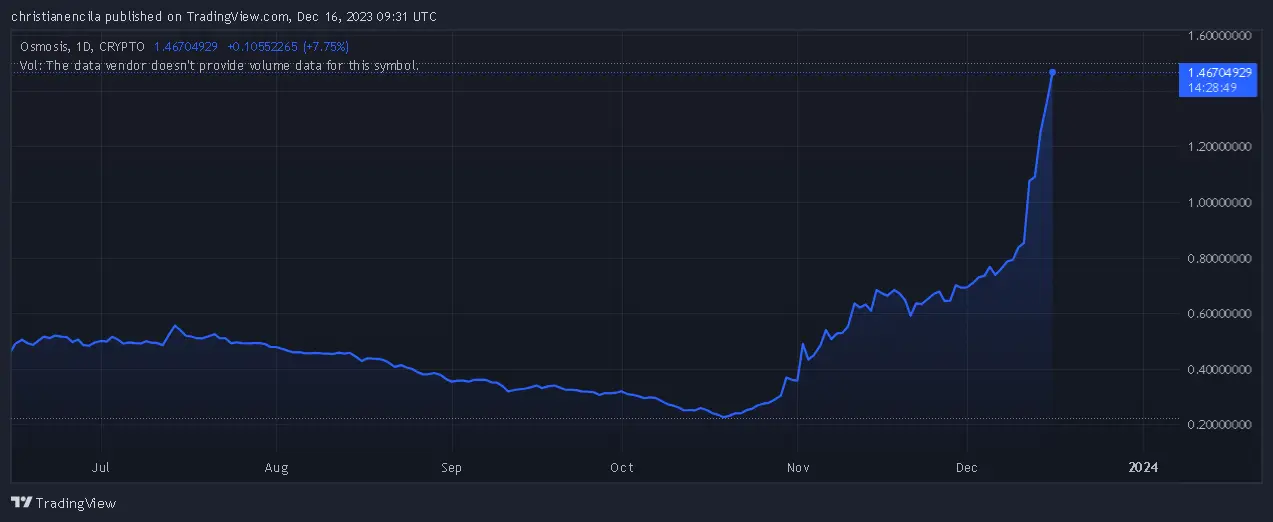 Osmosis currently trading at $1.4645 territory. Chart: TradingView.com